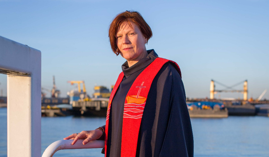 “Bijna twintig jaar. Ik ben in 2001 bevestigd als koopvaardijpredikant in de haven van het Rijnmondgebied. Bij die functie horen eigen stola’s in de kleuren van het kerkelijk jaar met bijbelse symbolen die ook herkenbaar zijn voor de zeevaart.”