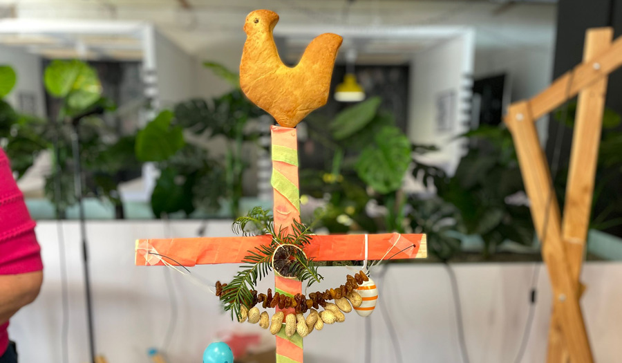 Je mag de stok vrolijk versieren, omdat we vieren dat Jezus weer opstond uit de