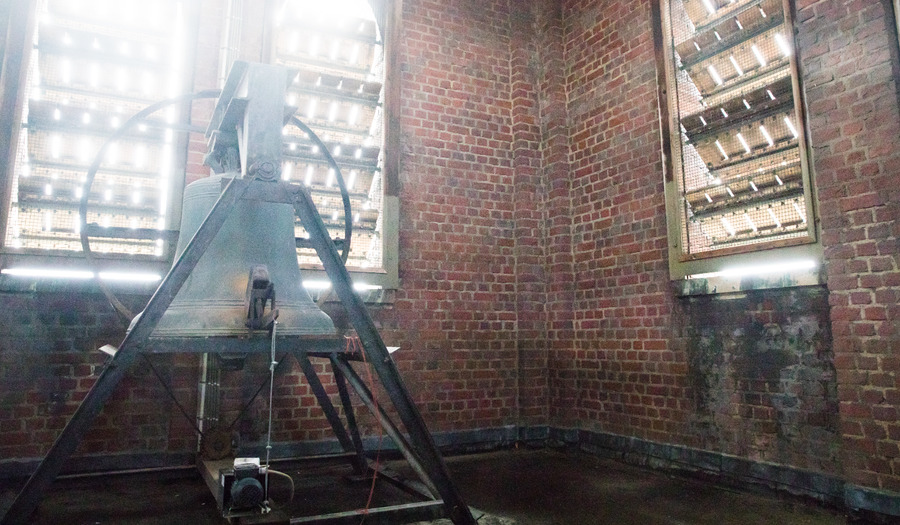“Hoe oud onze klokkenstoel is, is niet precies bekend. Maar de eerste vermelding stamt uit 1723. Om alle drie klokken te luiden heb je vier mensen nodig, omdat de middelste klok dik 800 kilo weegt.