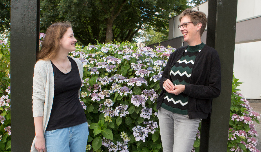 Haar eigen dochters had ze niet hoeven vragen voor dit tweegesprek, lacht Mariëtte. “Die vinden zoiets helemaal niks. Maar ik schatte in dat jij dit wel leuk zou vinden.” “Ja, geweldig!” reageert Naomi direct. Ze is meteen doorgefietst na haar werk in de lunchroom, waar ze afwasser en barvrouw is. “Even deodorant spuiten hoor, anders voel ik me zo vies.”