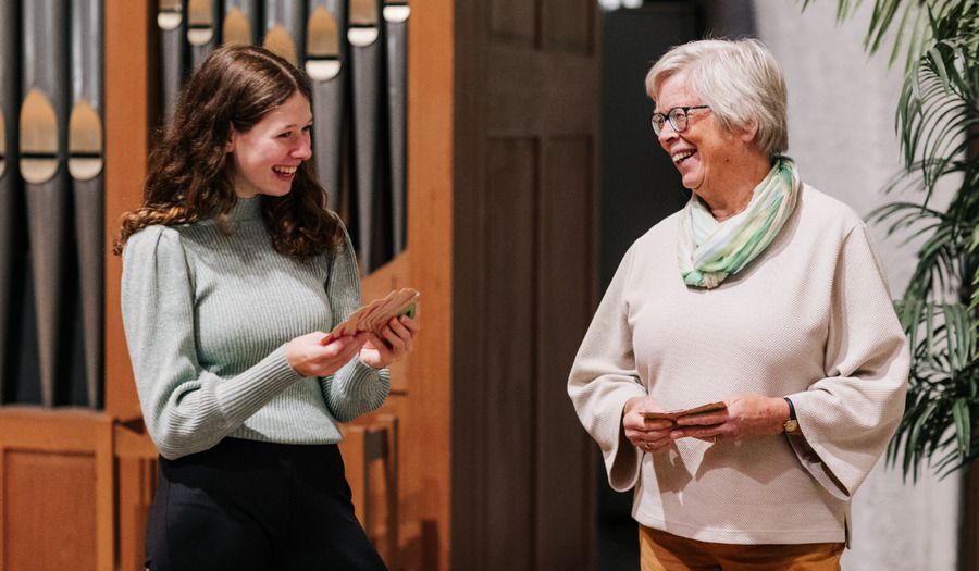 Judith en Jikke voelen zich thuis in de actieve Morgensterkerk: “We hadden laatst een vrijwilligersavond en er waren gewoon meer mensen aanwezig dan tijdens een dienst. Er zijn veel meer mensen actief voor de kerk dan je ziet en beseft. Echt mooi om te zien”, vertelt Judith enthousiast.
